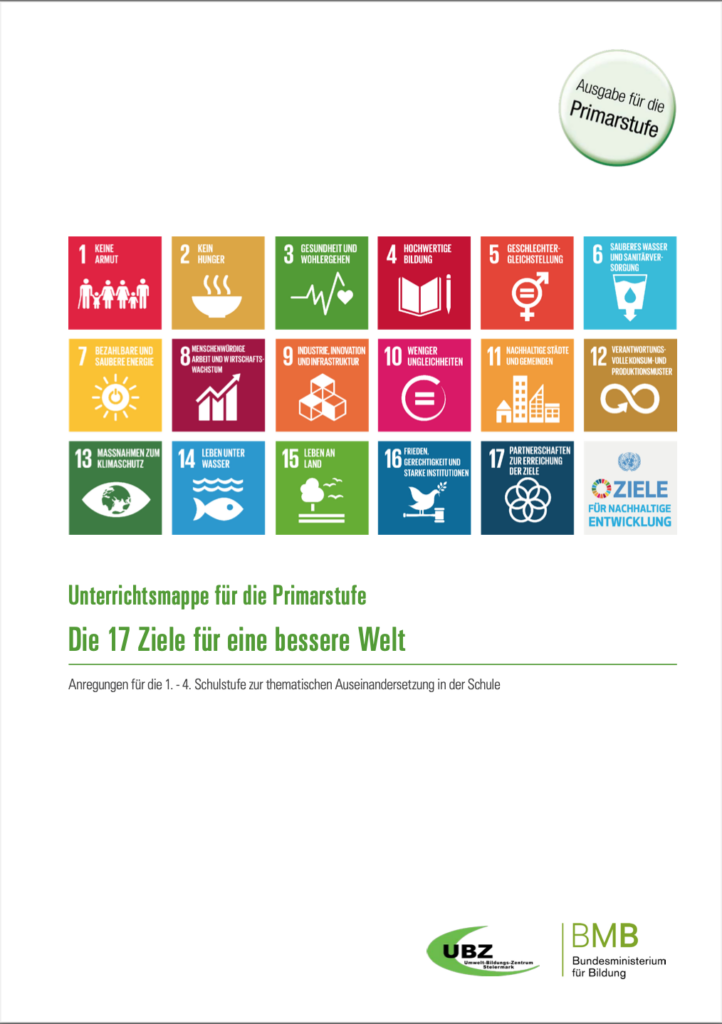 Die Unterrichtsmappe gibt Lehrerenden der Primarstufe einen Überblick über die 17 UN-Nachhaltigkeitsziele (Sustainable Development Goals, SDGs) und stellt Anregungen und Tipps bereit, um die SDGs im Unterricht umzusetzen. SchülerInnen werden dabei motiviert, an der Erreichung der Ziele bis 2030 einen Teil beizutragen und ihre Zukunft verantwortlich mitzugestalten. Die Unterlagen sind der Zielgruppe und dem Alter der SchülerInnen entsprechend ausgearbeitet worden. Zu jedem Ziel finden Sie eine Doppelseite mit Kurzbeschreibung des Ziels, aktueller Lage und einer Unterrichtsanregung und weiterführenden Links und Tipps. Allgemeine Verweise bzw. Links runden die Mappen ab.